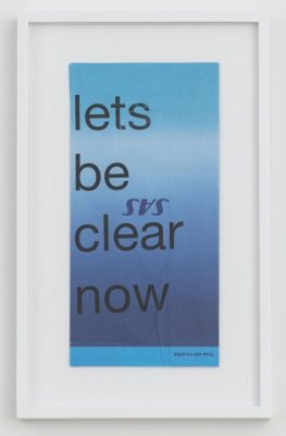 Cory Arcangel, 1978 lets be clear now 2020 Laserjet-utskrift på kräkpåse från skandinaviskt flygbolag 33,70 x 21,00 x 3,50 cm Magasin III samling