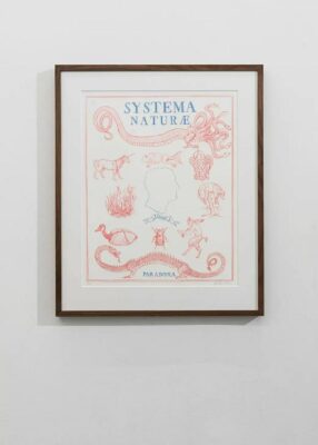 Drawing on paper, red and blue pencil